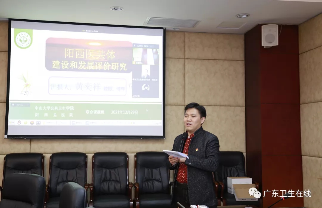 2020年,中山大学公共卫生学院黄奕祥教授团队应邀对阳西县医共体的建设进行系统性评估研究,项目完成后于2021年12月29日在阳西举行《阳西县医共体建设评估研究》结题报告会。