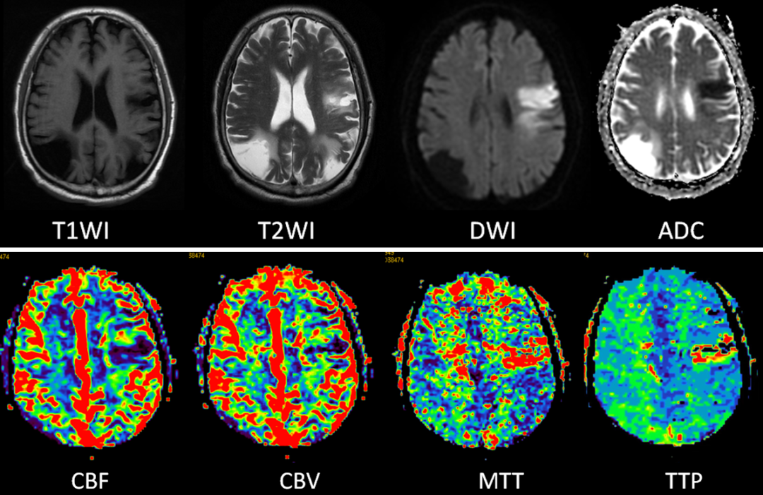 目前我院开展的PWI主要通过静脉团注对比剂使局部毛细血管内磁敏感性增加致局部磁场不均匀,质子自旋去相位,引起T2、 T2*或T1值的明显缩短,获得一系列动态影像,通过定量指标反映局部灌注情况。PWI在脑缺血性疾病的诊断中有非常重要的意义,联合多种MRI成像技术诊断效能更高、更准确,可以为临床制定治疗方案提供很多重要的信息。