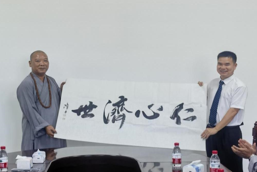 最后释隆日住持挥笔书写了“仁心济世”四个大字,表达对总医院党委书记关登海率队“阳西总医院健康行”一行的衷心感谢。
