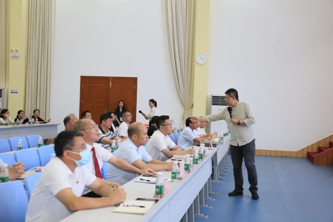 为进一步提升中高层管理干部综合能力,塑造现代医院管理理念,构建科学管理文化氛围,7月13日下午,阳西总医院顺利举办了中高层干部管理能力提升第二期培训班,特邀人文医学实践技能推广者、公立医院高质量发展新文化建设推动者沈健教授进行授课。总医院班子成员,职能中心主任,县直医院、各镇卫生院班子成员,医共体成员单位中层以上管理者,县直医院青年沙龙代表共约300人参加了培训班。培训班由总医院副总院长区济挺主持。