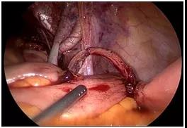 手术采用了先进的超高清腹腔镜设备,视野清晰,分离精准,手术进行了扩大盆腔淋巴清扫,最大程度保证手术效果 (上图)。