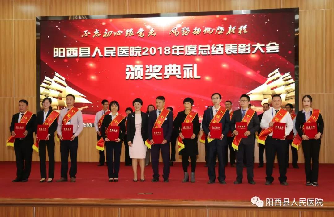 2月2日晚,阳西县人民医院2018年度总结表彰大会暨“不忘初心跟党走,风劲扬帆启新程”迎新春文艺晚会在医院集团活动中心举行。副县长陈以霜,县电子政务办主任刘丽萍,县卫计局党组书记、局长陈俊华,县卫计局党组副书记陶沛出席会议,阳西县医院集团领导班子,先进集体代表、个人及医院员工约400余人参会。