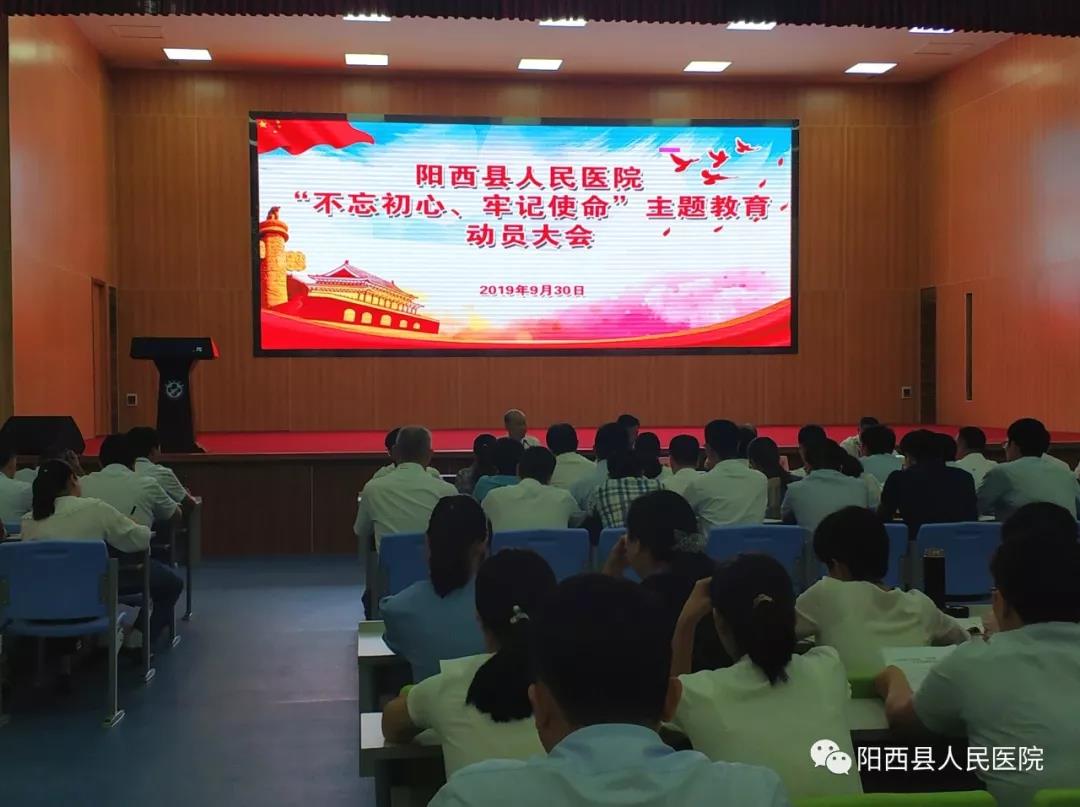 9月30日,阳西县人民医院党委召开“不忘初心、牢记使命”主题教育工作会议。会议深入学习习近平总书记重要讲话精神,认真贯彻落实中央和省委、市委、县委关于主题教育各项部署要求和有关文件精神,动员部署我院开展“不忘初心、牢记使命”主题教育工作。党委书记吴达党同志作动员讲话,县委第五巡回指导组副组长邓家养同志作指导讲话,党委副书记廖业敏同志主持会议,阳西总医院总院长洪家文出席会议。