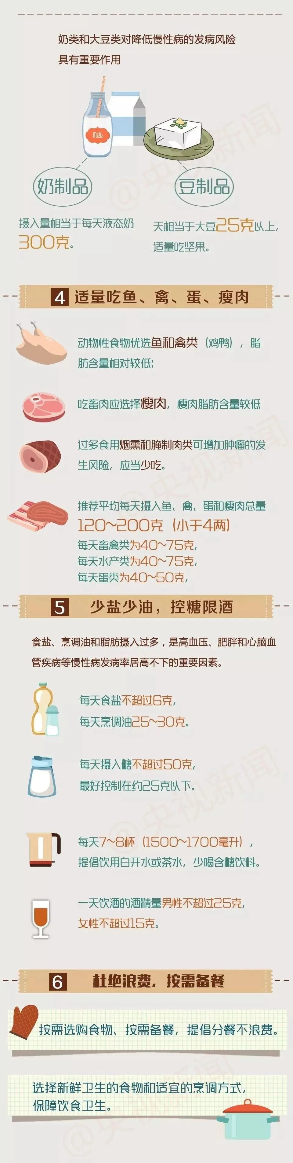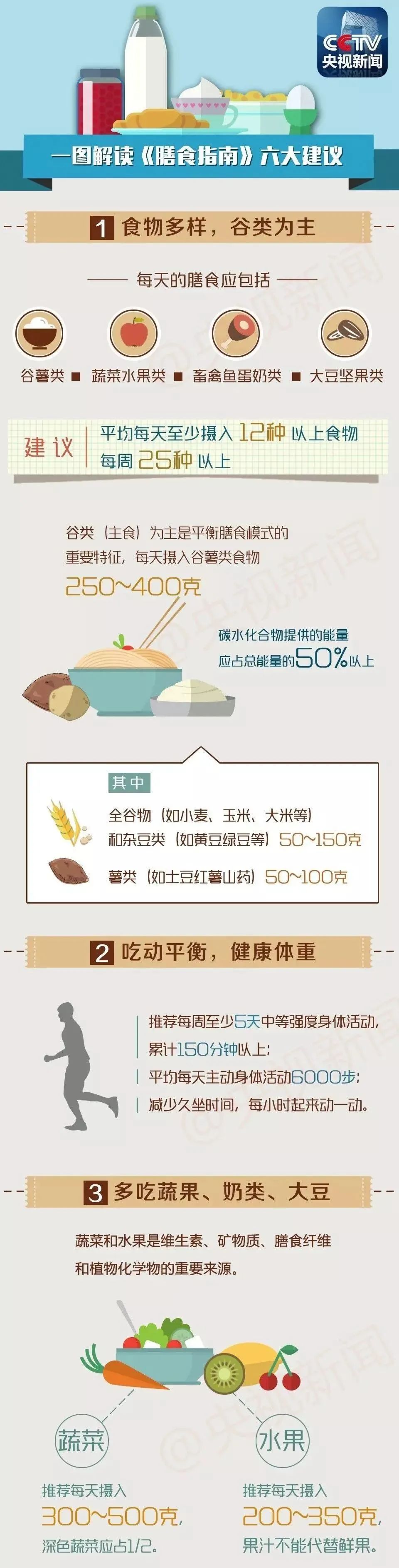 每天吃50-150克全谷物或杂豆类(大麦、小麦、黑米、小米、黄豆、绿豆等)、1-2两的肉类、喝300克牛奶、吃“半斤水果,一斤菜”就能满足机体的需要。