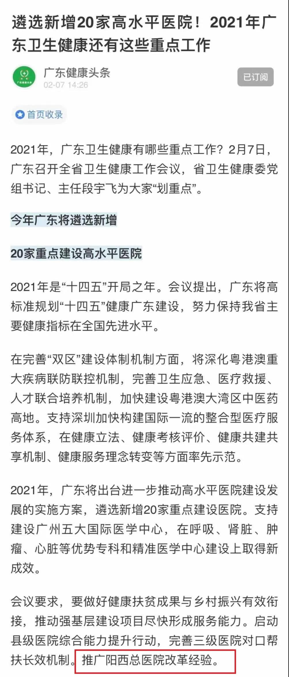 广东省卫生健康工作会议明确了!2021年将重点推广阳西总医院改革经验