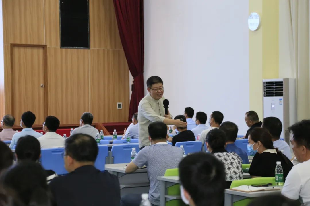 为进一步提升中高层管理干部综合能力,塑造现代医院管理理念,构建科学管理文化氛围,7月13日下午,阳西总医院顺利举办了中高层干部管理能力提升第二期培训班,特邀人文医学实践技能推广者、公立医院高质量发展新文化建设推动者沈健教授进行授课。总医院班子成员,职能中心主任,县直医院、各镇卫生院班子成员,医共体成员单位中层以上管理者,县直医院青年沙龙代表共约300人参加了培训班。培训班由总医院副总院长区济挺主持。