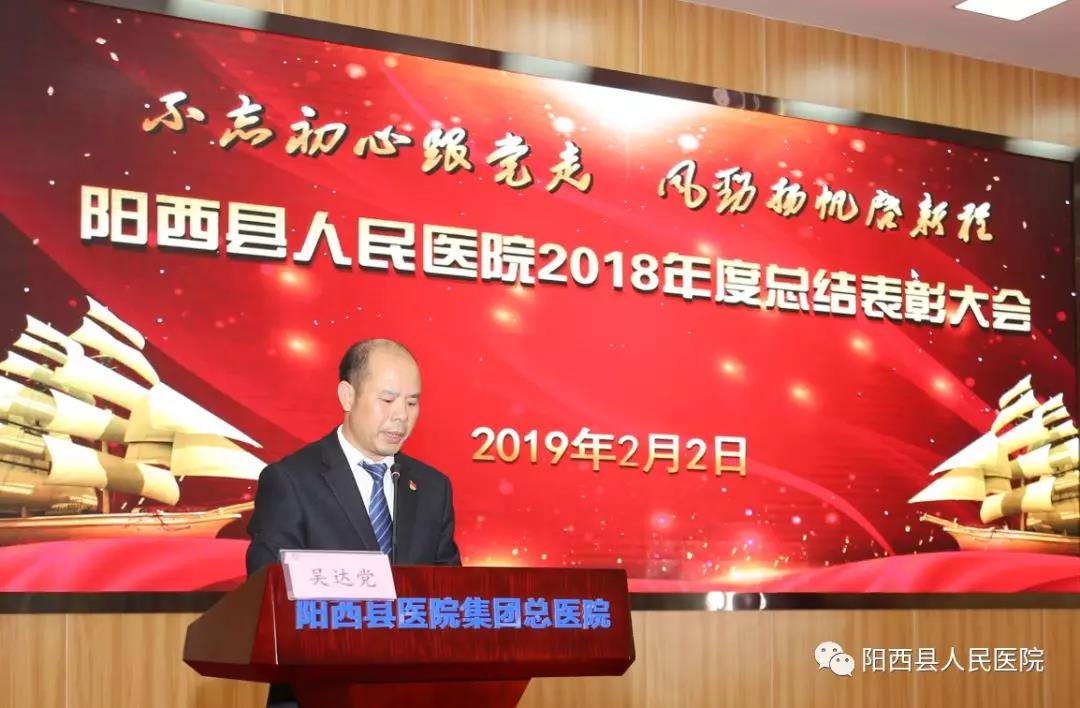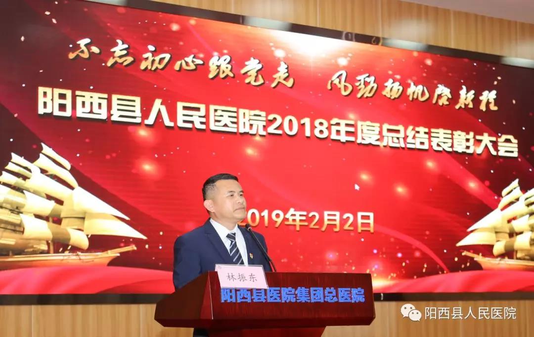 2月2日晚,阳西县人民医院2018年度总结表彰大会暨“不忘初心跟党走,风劲扬帆启新程”迎新春文艺晚会在医院集团活动中心举行。副县长陈以霜,县电子政务办主任刘丽萍,县卫计局党组书记、局长陈俊华,县卫计局党组副书记陶沛出席会议,阳西县医院集团领导班子,先进集体代表、个人及医院员工约400余人参会。