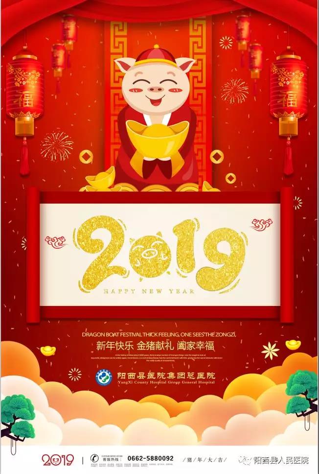 金猪贺岁!阳西县医院集团总医院祝大家身体健康、新春快乐! 来源:阳西县人民医院 作者:宣传科 发布时间:2019/02/05 点击数: 次 【字体:小 大】 猪年大吉! 阳西县医院集团总医院给大家拜年了! 恭祝大家在新的一年里: 身体健康、万事如意、阖家幸福! 分享到: 打印正文