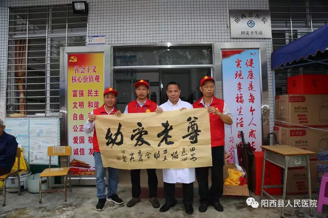 夕阳无限好,人间重晚晴。农历九月初九是中国的传统节日——重阳节。为充分响应并贯彻落实“不忘初心 牢记使命”主题教育活动的精神,弘扬和传承敬老文化,营造尊老敬老的社会氛围,阳西县人民医院党员志愿者团队于重阳节来到新圩镇田安村开展“不忘初心 牢记使命”送医下乡义诊活动。